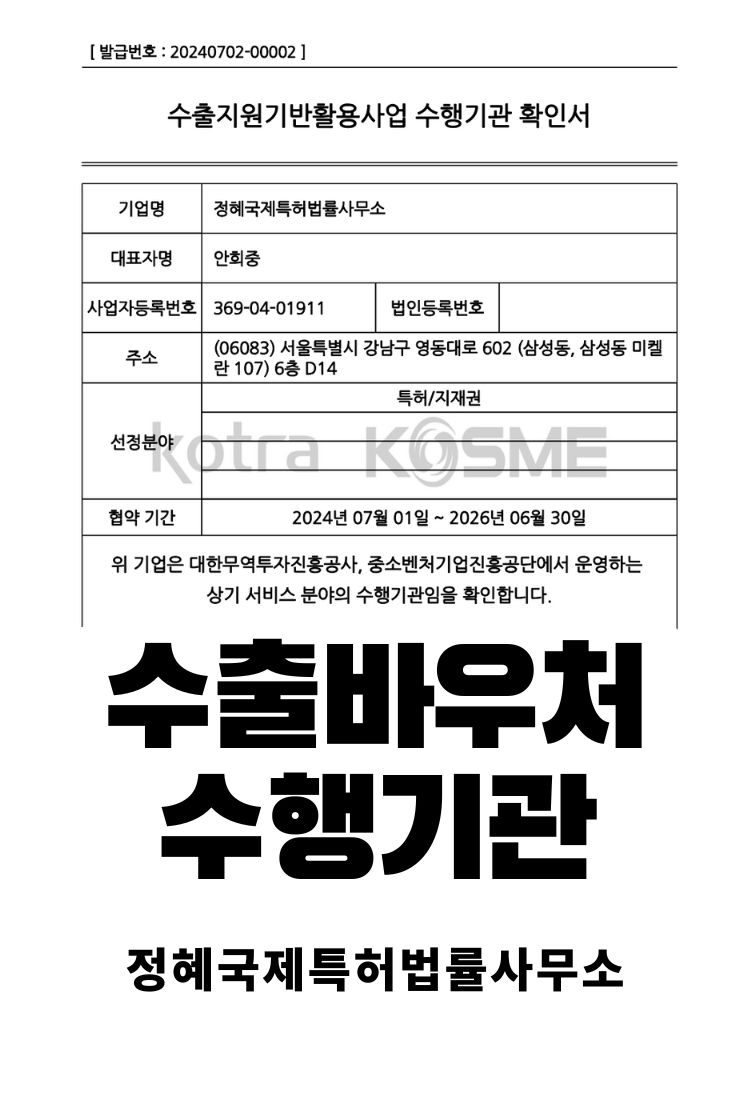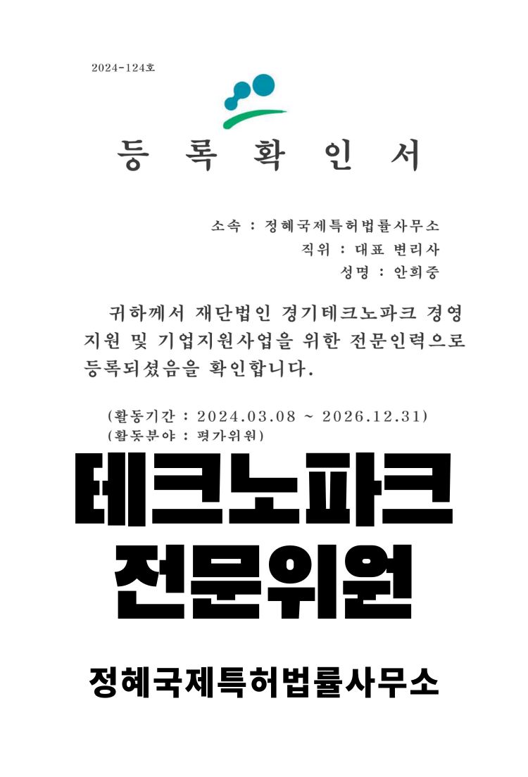 정혜국제특허사무소 자격 및 인증 현황